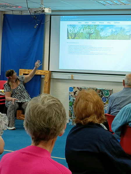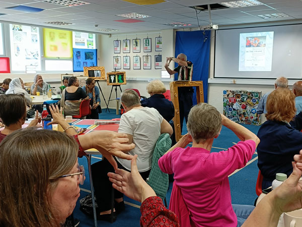 The event provided the opportunity for Skippko groups, individual participants and artists to share their talents during short presentations to an audience, in order to invite new perspectives on the work they are creating. ‘In the Frame’ was Directed by Anthony Haddon, with the support of artists Emma Baim and Rozi Fuller. We had a wonderful mix of poetry and song, performance, demonstrations and talks plus a game of ‘Top Stats’ created by the Skippko community research team. The people who shared their talents were Anthony, Emma, June, Irene, Jayne, Yvonne, Rozi, Jenni, Diane, Sarah Jane, Mary, Rachel, Jackie, Nicki and Sally. ‘In the Frame’ is part of Skippko’s 3 year programme ‘Home from Home’ funded by the National Lottery Community Fund.