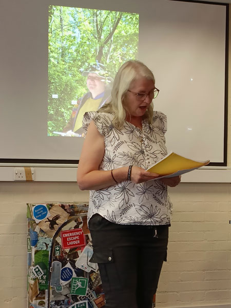 The poems that Jackie read were born out of upset and shock at the death of Peter, a dear friend and member of Under the Canopy. These are the first poems that Jackie has written, and we were the second audience to hear them… so here we met Jackie at the beginning of her journey as a writer and public performer.