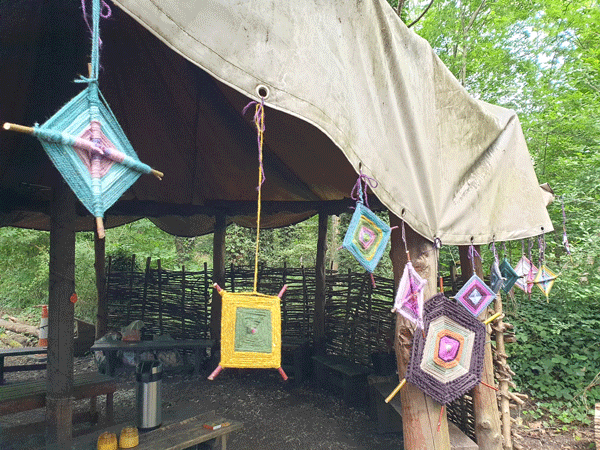 Everyone enjoyed creating wonderfully colourful ‘gods eye’ wrapped hangings to adorn the canopy.