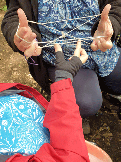 Played ‘cats craddle’ and tried to solve Matthews knot tying challenge! We had a couple of yarn based stories and celebrated the strawberry full moon, by eating strawberries, of course!