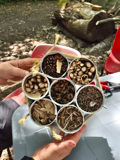 Our next session involved making our own bug hotels to hang in the garden at Hollybush Conservation Centre..